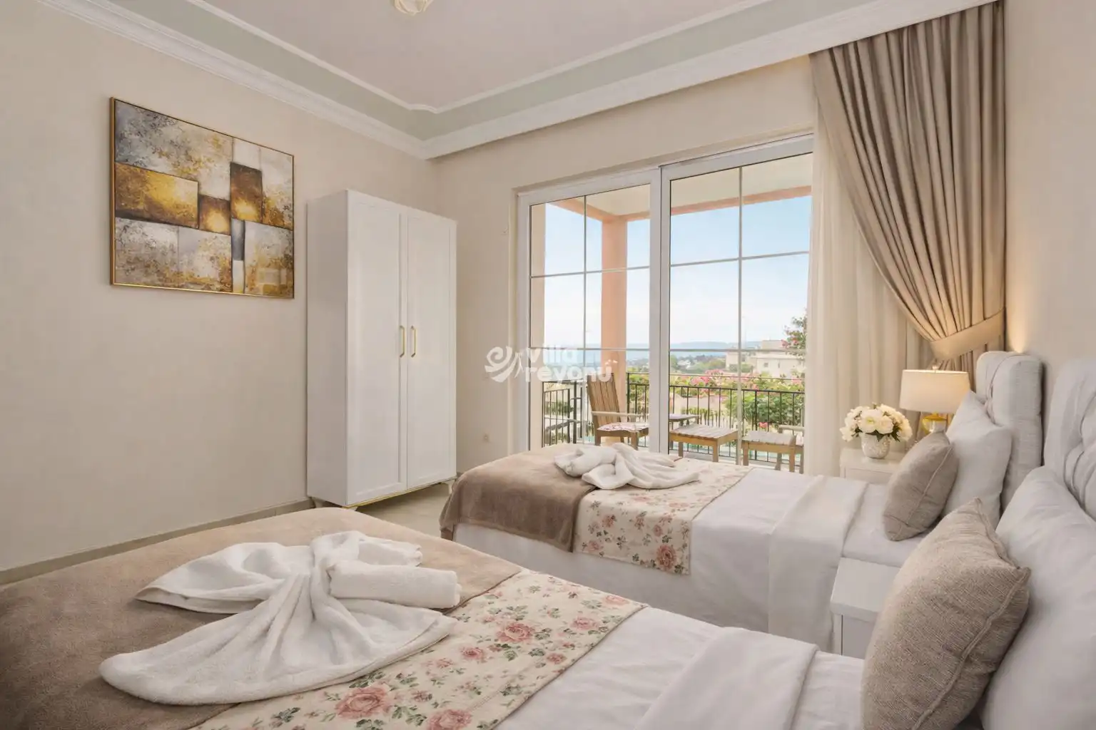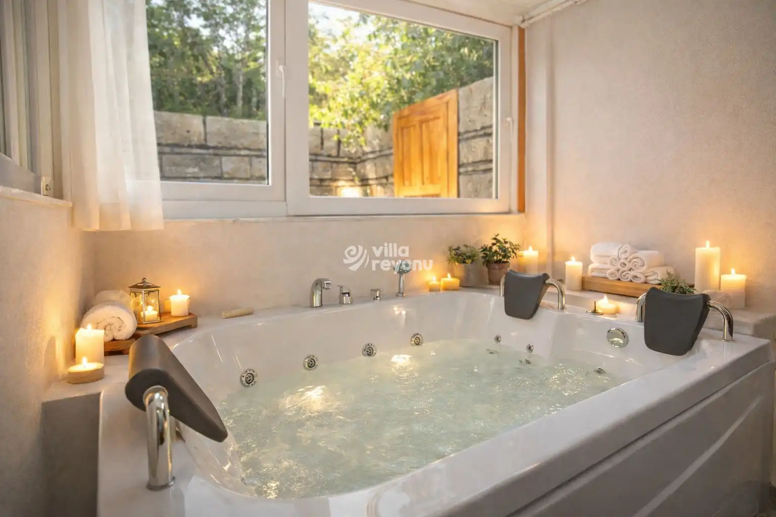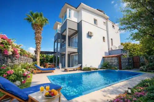 Her odanın kendine ait özel balkonu bulunmakta, bu sayede misafirlerimiz hem odalarında hem de villanın genel alanlarında eşsiz manzaraların keyfini çıkarabilirler. Villanın geniş havuz terası, güneşin tadını çıkarırken rahatlamanızı sağlayacak ideal bir alan sunuyor. Ayrıca, villamızda bulunan ortak kullanım alanında hem çocuklar hem de yetişkinler için ayrı bir yüzme havuzu da bulunmaktadır, böylece herkesin ihtiyacına uygun bir alan sağlanmaktadır.